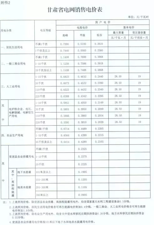 1、2017-2019年甘肅電網(wǎng)輸配電價表