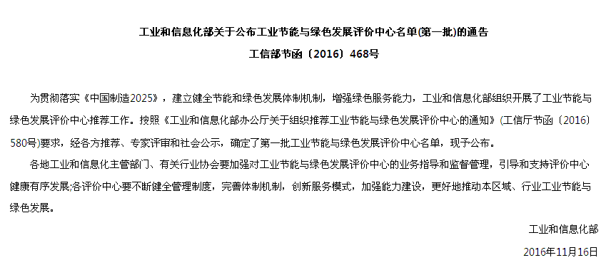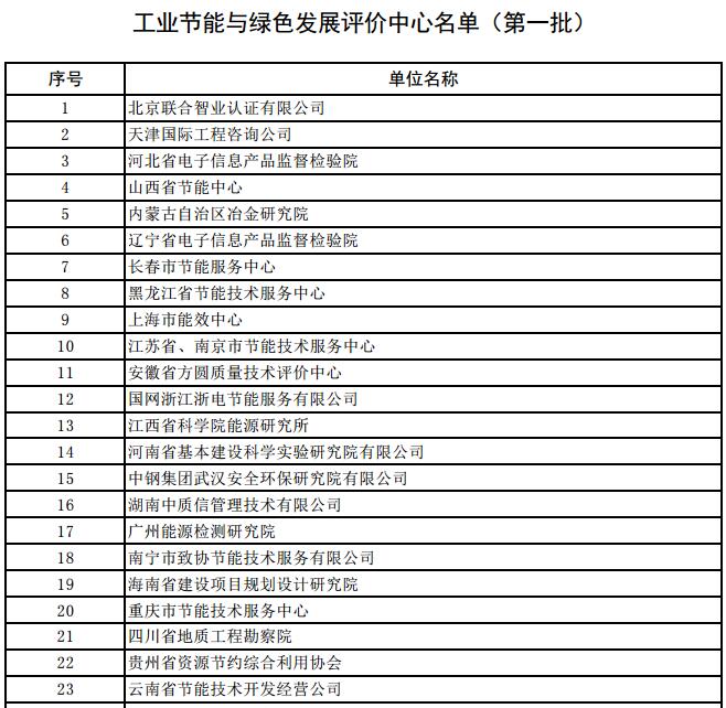 近日,從工信部獲悉,關于工業(yè)節(jié)能與綠色發(fā)展評價中心名單(第一批)的通告已經發(fā)布工業(yè)節(jié)能與綠色發(fā)展評價中心名單(第一批)包括長春市節(jié)能服務中心、黑龍江省節(jié)能技術服務中心等35家企業(yè)機構。如下: