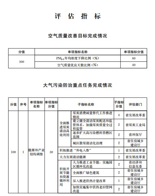 第三條評估指標(biāo)包括空氣質(zhì)量改善目標(biāo)完成情況、大氣污染防治重點(diǎn)任務(wù)完成情況。