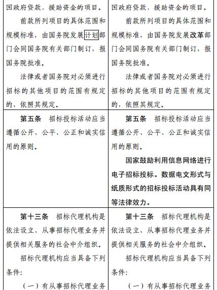《中華人民共和國招標(biāo)投標(biāo)法》修改前后對照表