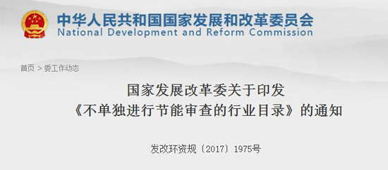 國(guó)家發(fā)改委公示:這些行業(yè)不單獨(dú)進(jìn)行節(jié)能審查
