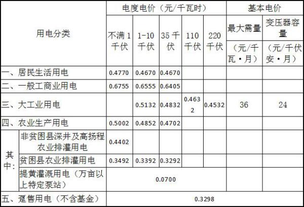 注:1、上表所列價(jià)格含增值稅、線損及交叉補(bǔ)貼,不含政府性基金及附加。