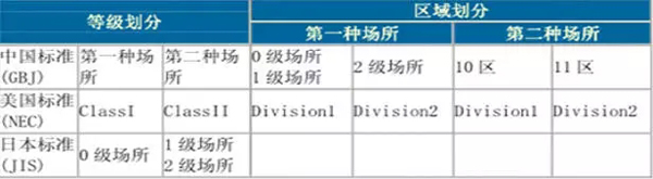 中國(guó)、美國(guó)、日本危險(xiǎn)區(qū)域劃分對(duì)照
