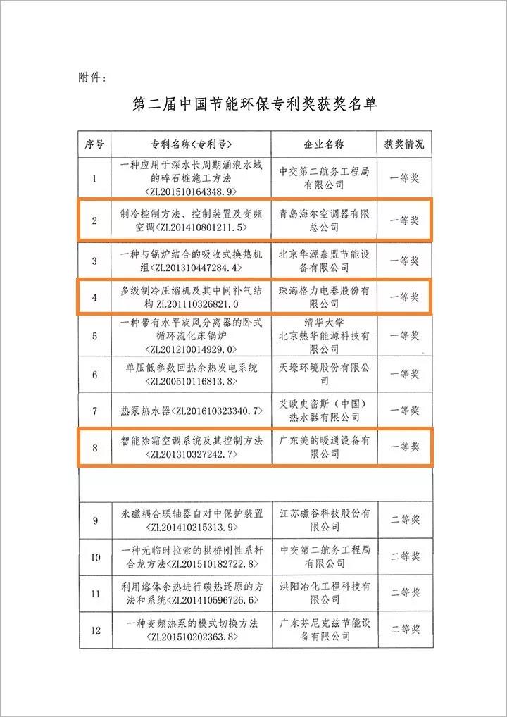 此次獲獎(jiǎng)名單里,更是有海爾空調(diào)、格力電器、美的暖通等知名大公司獲得了一等獎(jiǎng)、二等獎(jiǎng),這也足以看出這次的中國節(jié)能環(huán)保專利評選含金量非常高!