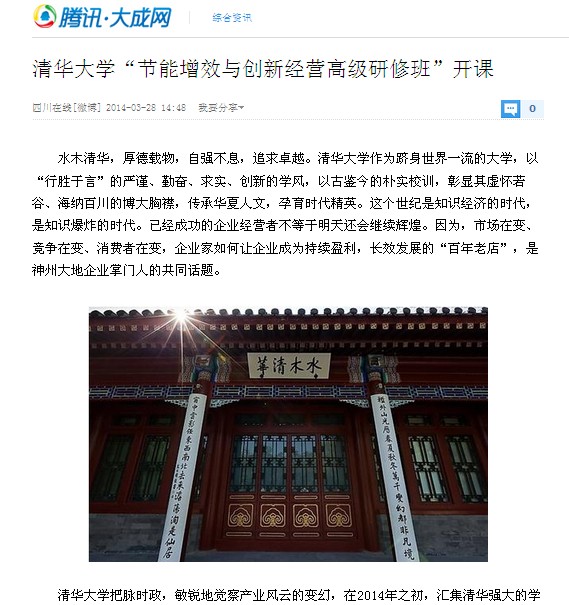 清華大學“節(jié)能增效與創(chuàng)新經(jīng)營高級研修班”開課