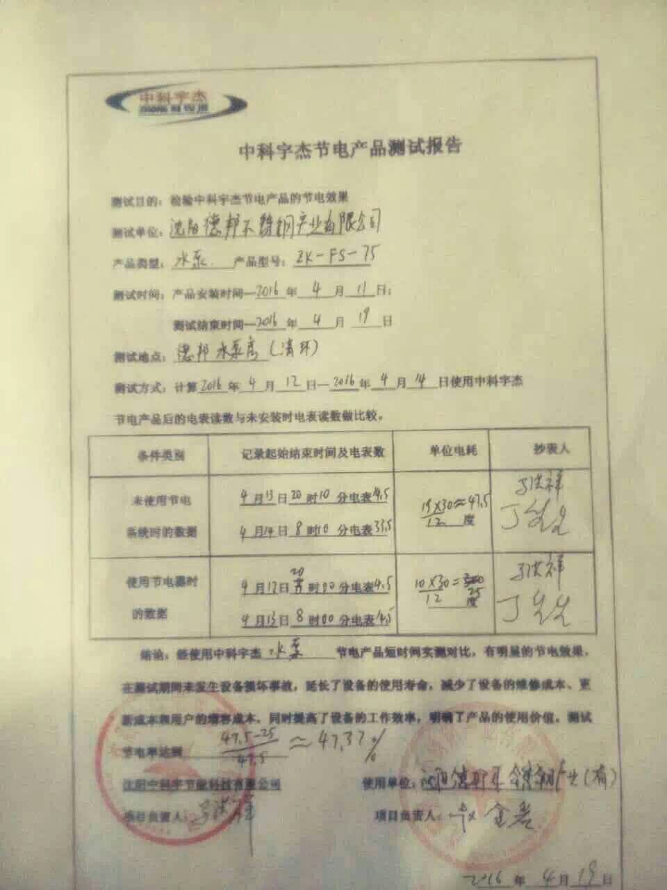 安裝調(diào)試驗收,節(jié)能效率高達(dá)47.37%。節(jié)能設(shè)備安裝后,不但完全沒有對原設(shè)備造成不良的影響,還起到了延長設(shè)備壽命,減少維修成本的作用。該項目試點工程的節(jié)電效果顯著,得到了企業(yè)領(lǐng)導(dǎo)的一致認(rèn)可。