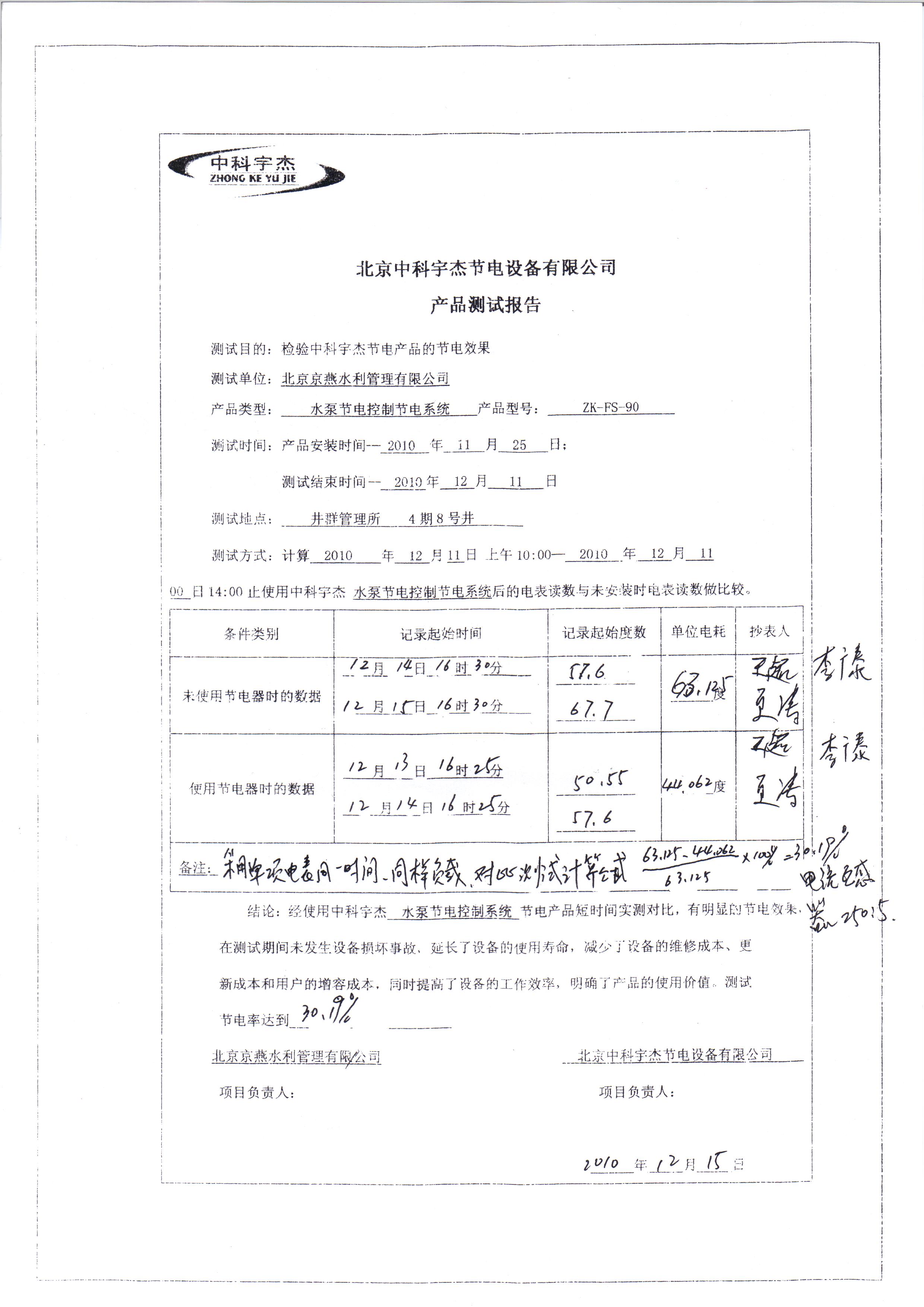 經(jīng)安裝調試驗收,節(jié)能效率達到30%,投資回報期6個月,按質保十年計算,此項節(jié)能工程能為北京京燕水利管理有限公司帶來380萬人民幣以上的直接效益。