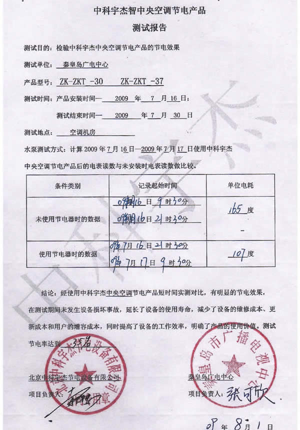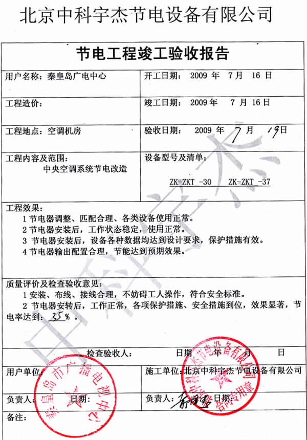 安裝調試驗收,節(jié)能效率達到35%,節(jié)能效果非常明顯,投資回報期不到兩年,為秦皇島市廣播電視局得到了很好的經濟效益和社會效益。